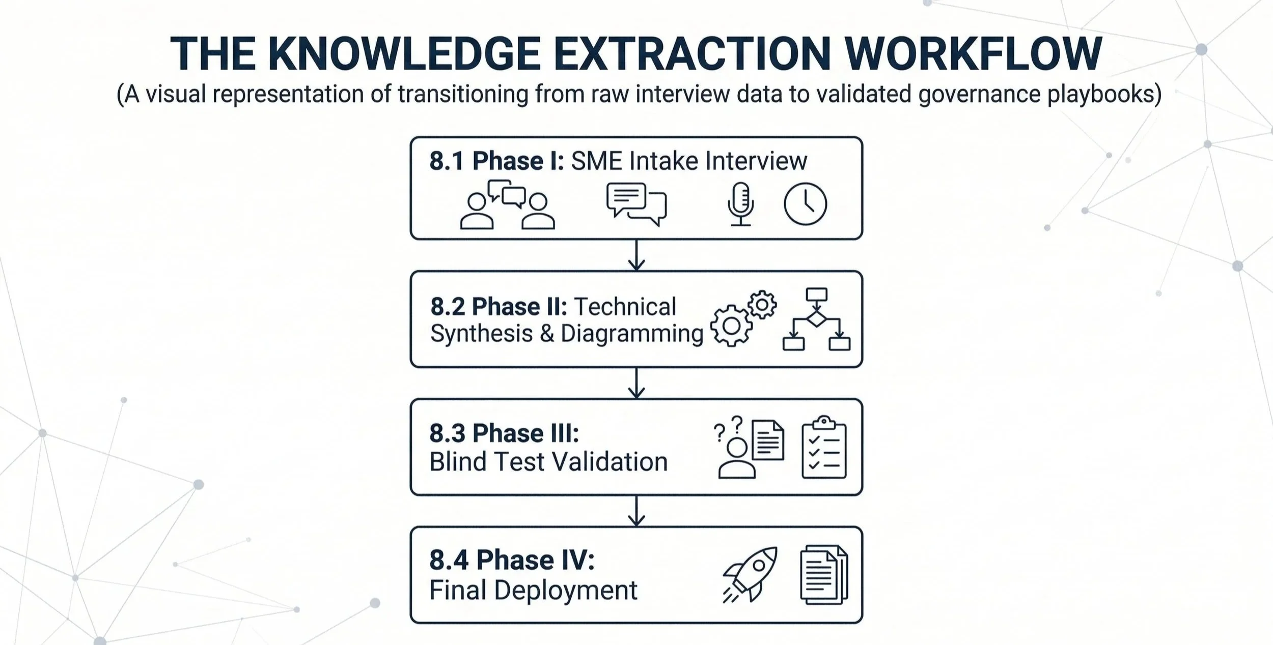 DIAGRAM: THE KNOWLEDGE EXTRACTION WORKFLOW (A visual representation of how we transition from raw interview data to validated governance playbooks)